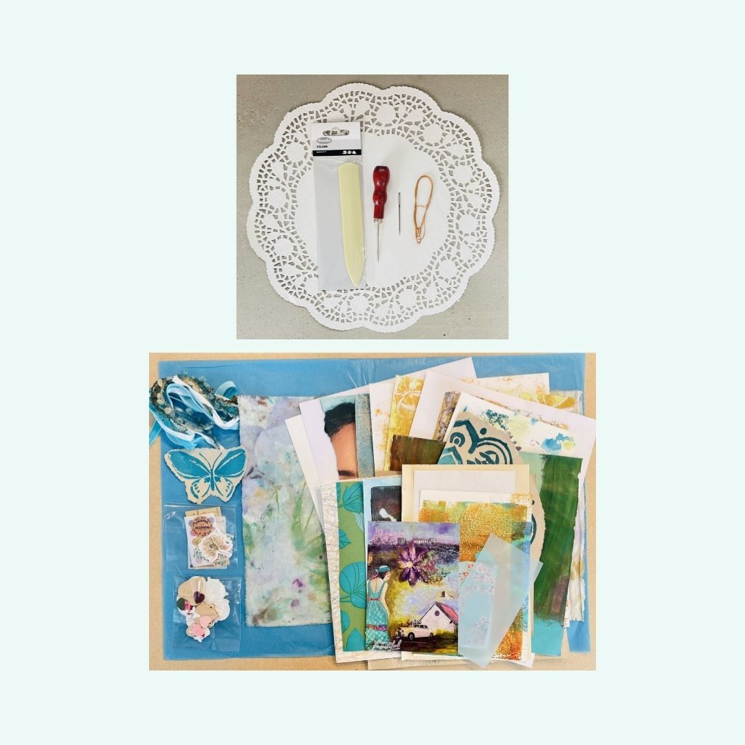 Ett ljuvligt paket som är skapat med kärlek och omtanke så att du kan göra din egen konstdagbok. Allt du behöver finns med i detta kitt som går i turkosa toner. Konstdagboken kommer bli i formatet A5 när den är klar. Du kan självklart komplettera med mer material som du har hemma men detta kitt innehåller allt du behöver för att komma igång med din första bok.