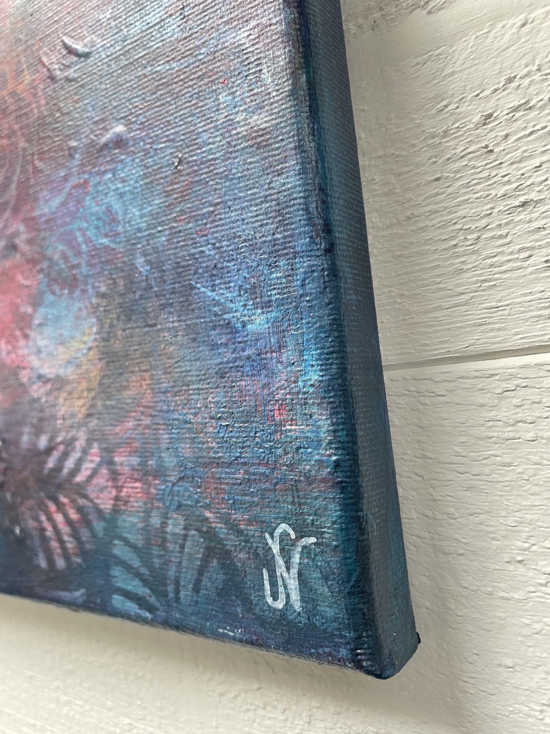 Målningen är målad på bomullscanvas och har måttet 42 x 30 x 1.8 cm