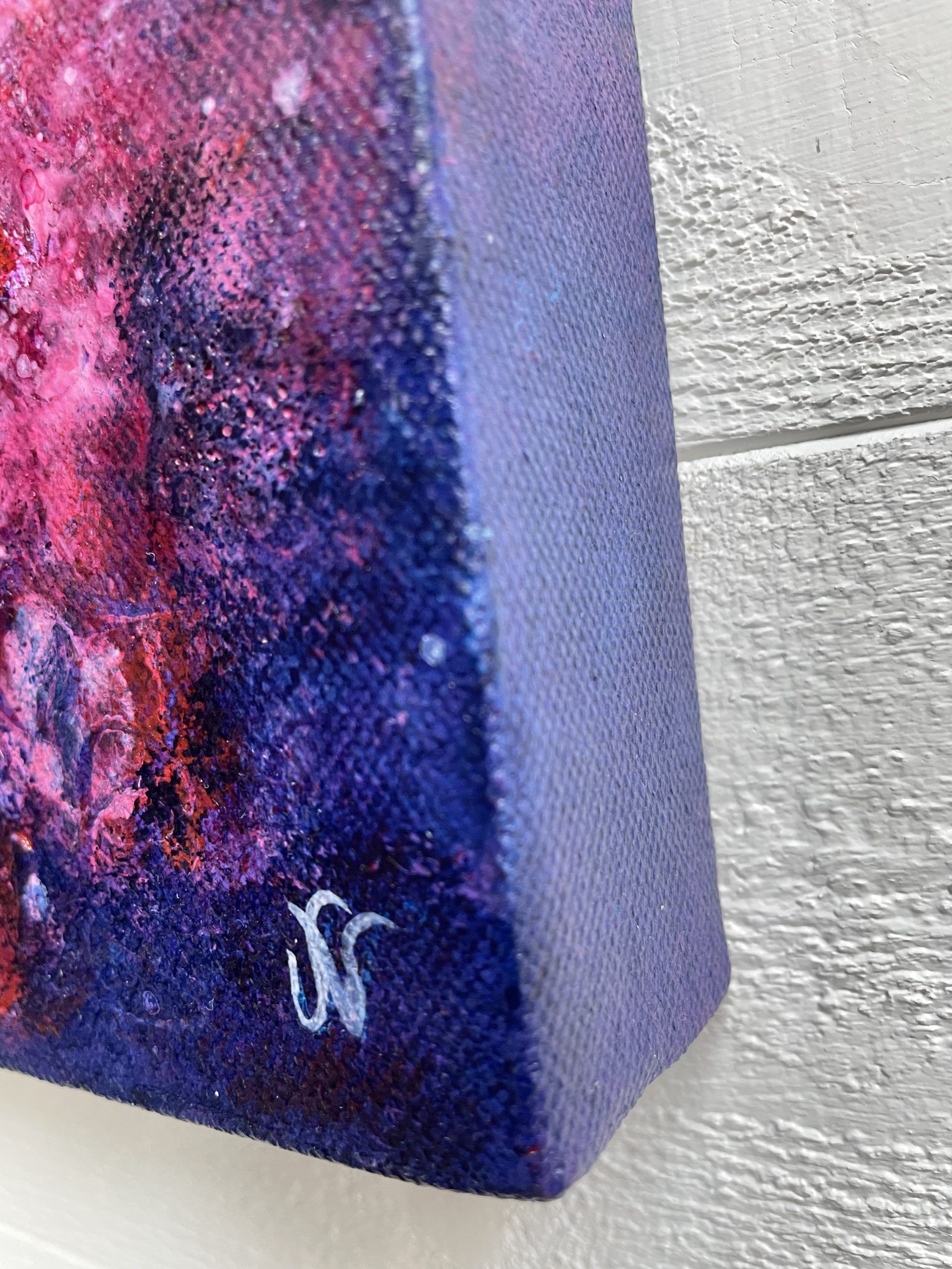 Process/material och storlek: En magisk kombination av färg, former och struktur som blir ger mig en känsla av att allt stämmer. En liten mülning 20x20x4 cm mülad med münga lager av akrylfärg och akryl ink som är fin att büde ställa pü en bänk eller hänga upp pü väggen. Lüt denna färglada mülning skapa värme och kärlek i ditt hem!