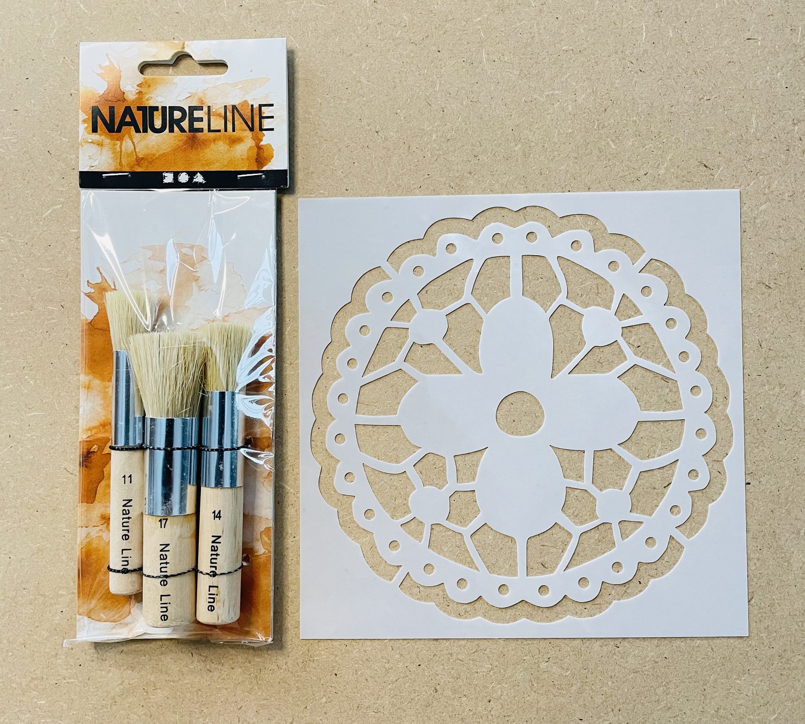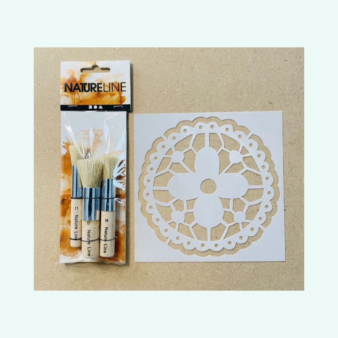 1 st stencil 15 x15 cm och 3 st stencilpenslar