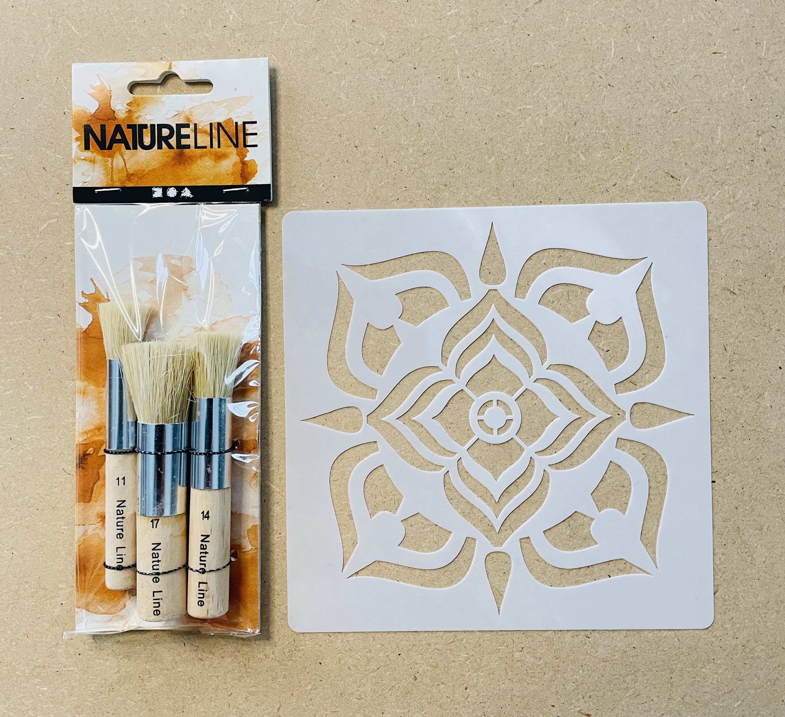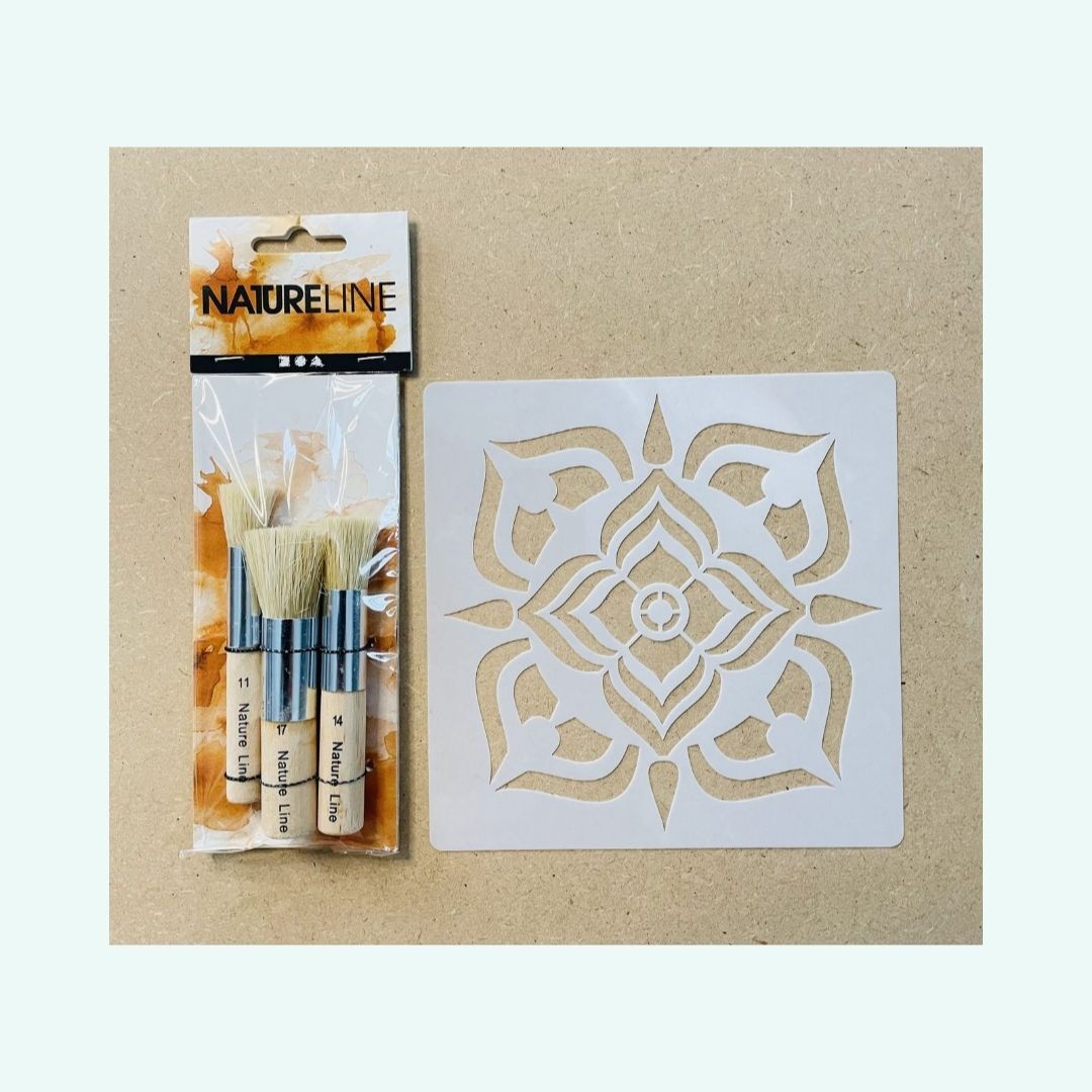 1st stencil 15 x15 cm och 3 st stencilpenslar